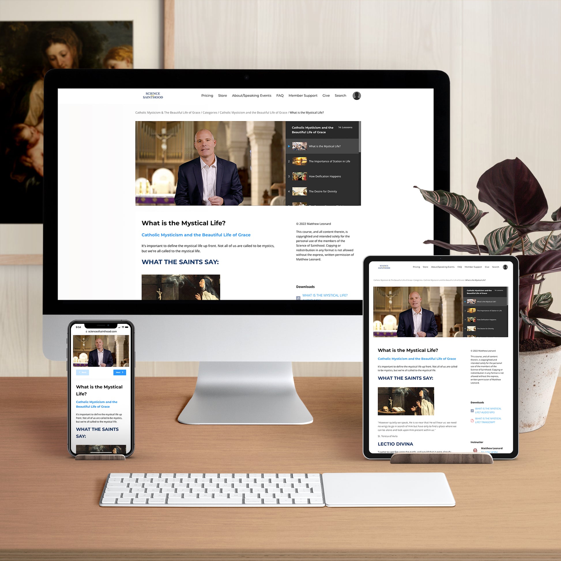 Full Access to every Science of Sainthood course (18 Courses + Bonus Courses) on computer, tablet, and mobile devices.